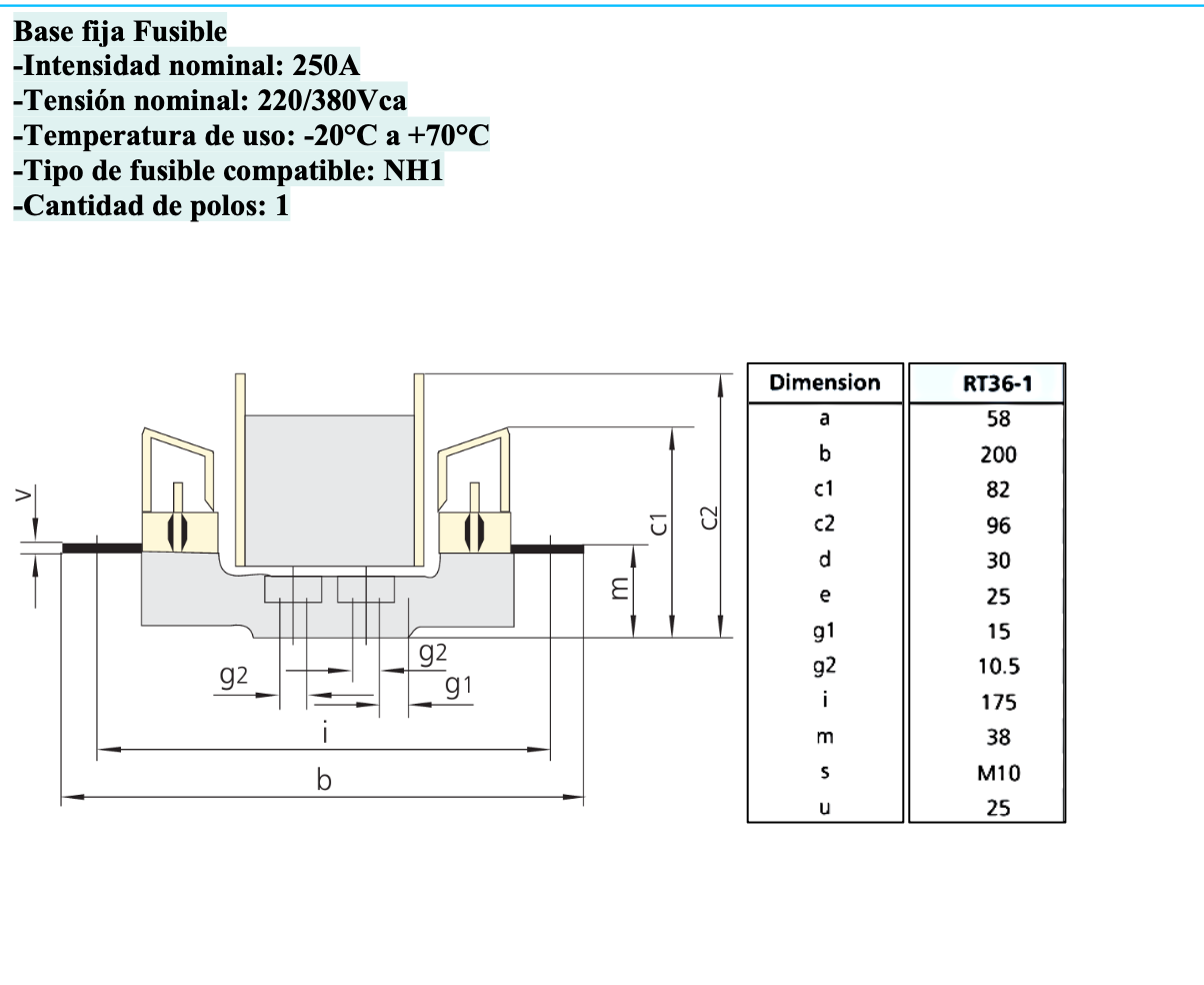 - Base Fija para Fusible CHINT RT36-1 NH1 250A 1P Perno M10 – Código 19011125CH