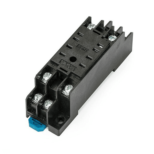 Base octal CHINT modelo CZY08A-E para minirrelés JZX con 2 contactos conmutados (NA/NC). Diseñada para montaje en riel DIN, facilita la instalación y el mantenimiento en sistemas de automatización industrial.