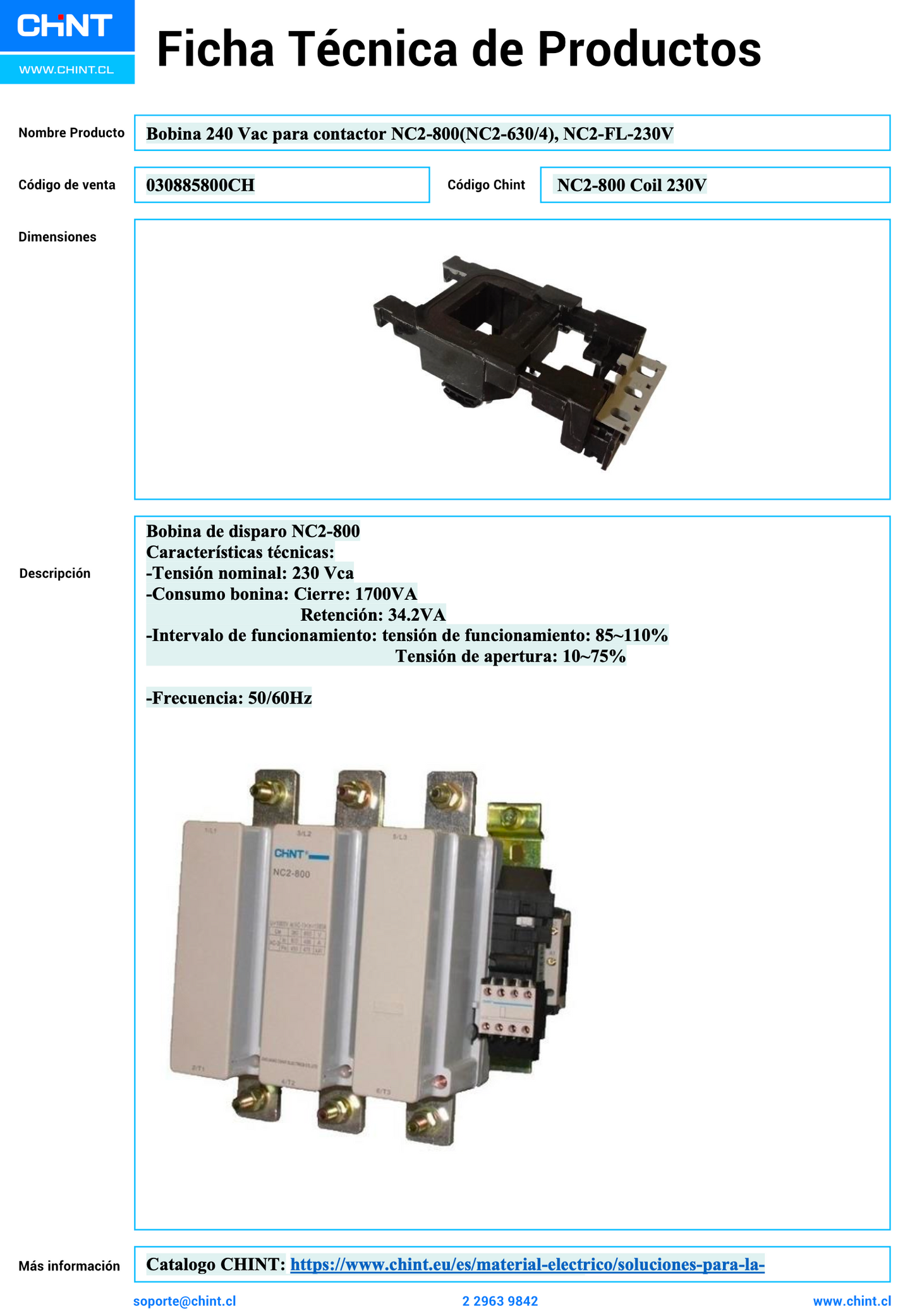 Bobina CHINT 380–415V AC para Contactor NC2-800 (630/4) – Código 030885800CH