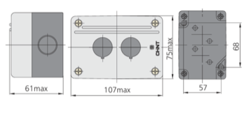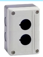 Caja NPH1‑20 de CHINT en PVC autoextinguible con grado IP65 y dos perforaciones de Ø22 mm. Permite alojar hasta dos operadores (pulsadores, selectores) en entornos industriales o exteriores, ofreciendo protección contra polvo y chorros de agua. Conforme IEC/EN 60947‑5‑1.