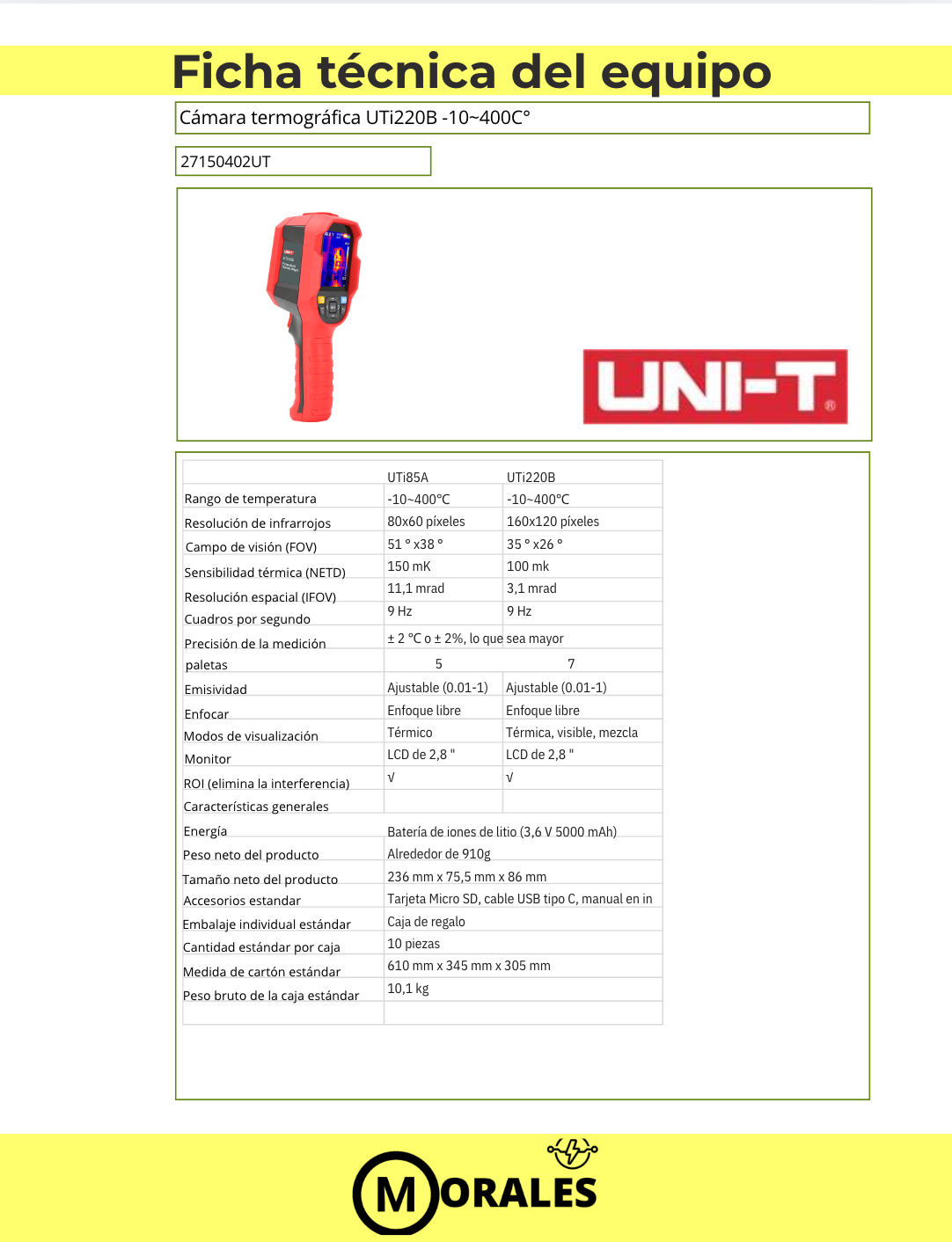 - Cámara Termográfica UTi220B – 220×160 px, -20°C a 400°C - 27150402UT