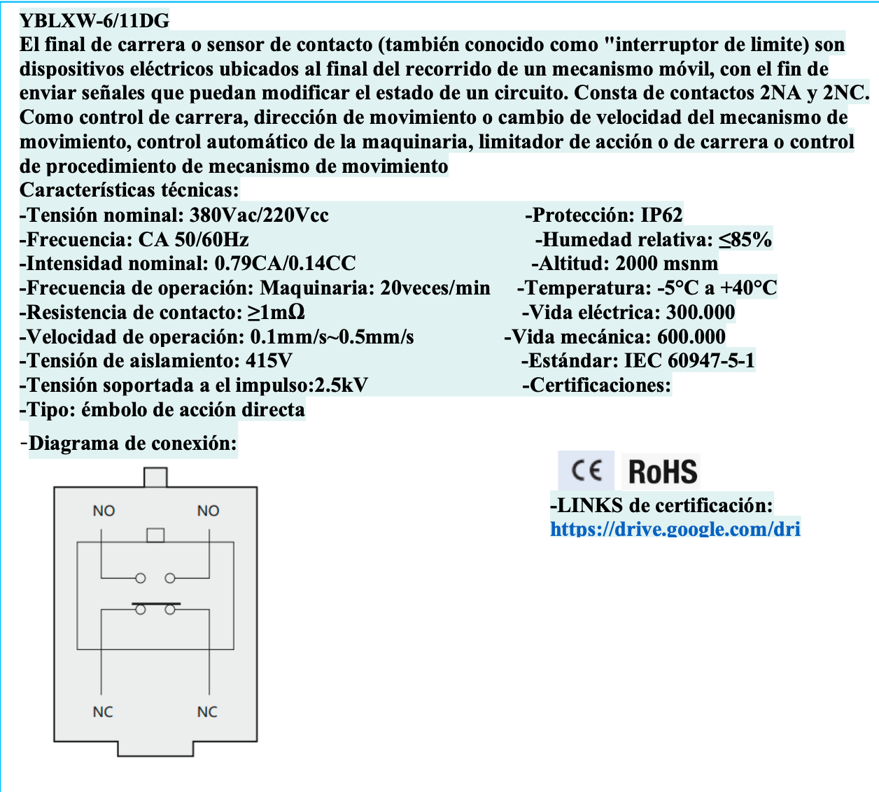- Final de Carrera CHINT YBLX-ME/8111 Tipo Pistón Fijo 20/22 mm – Código 57012011CH