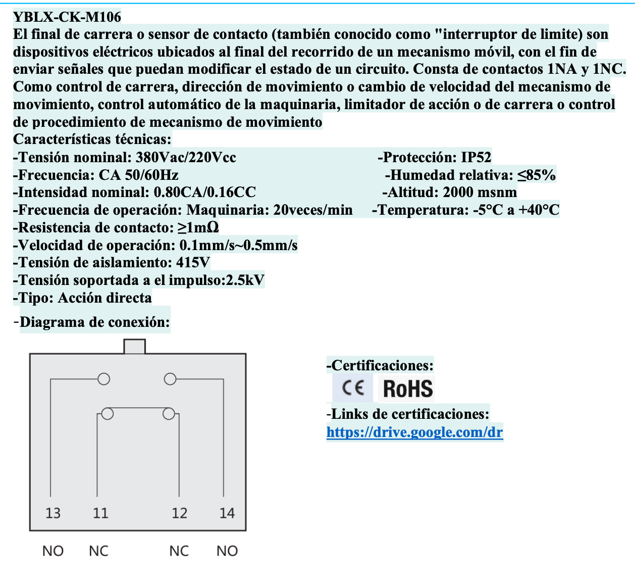 - Final de Carrera metálico CHINT YBLX-CK-M106 Varilla Metálica Flexible IP52 – Código 57044611CH