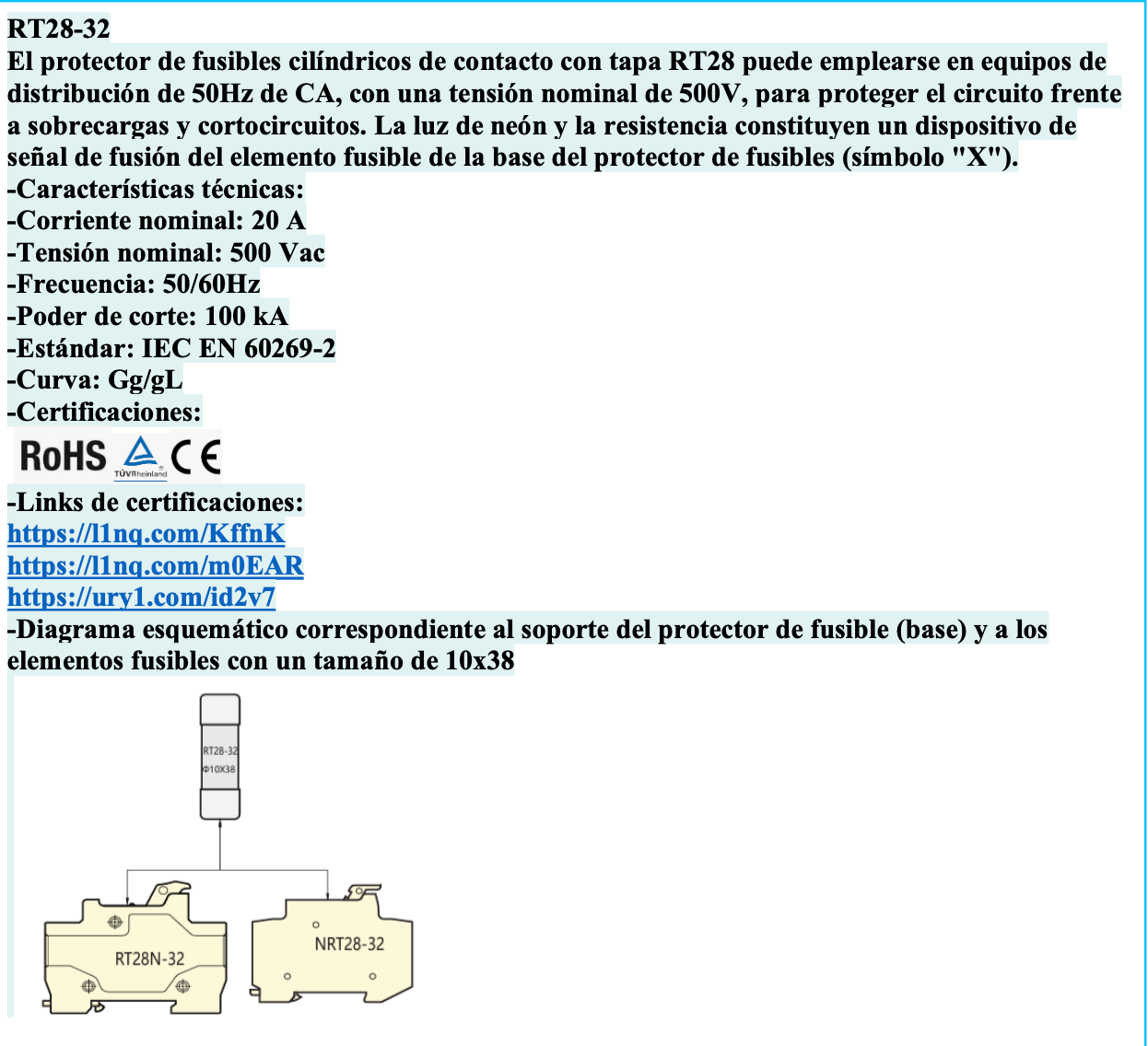 | Normativa | IEC/EN 60269 |