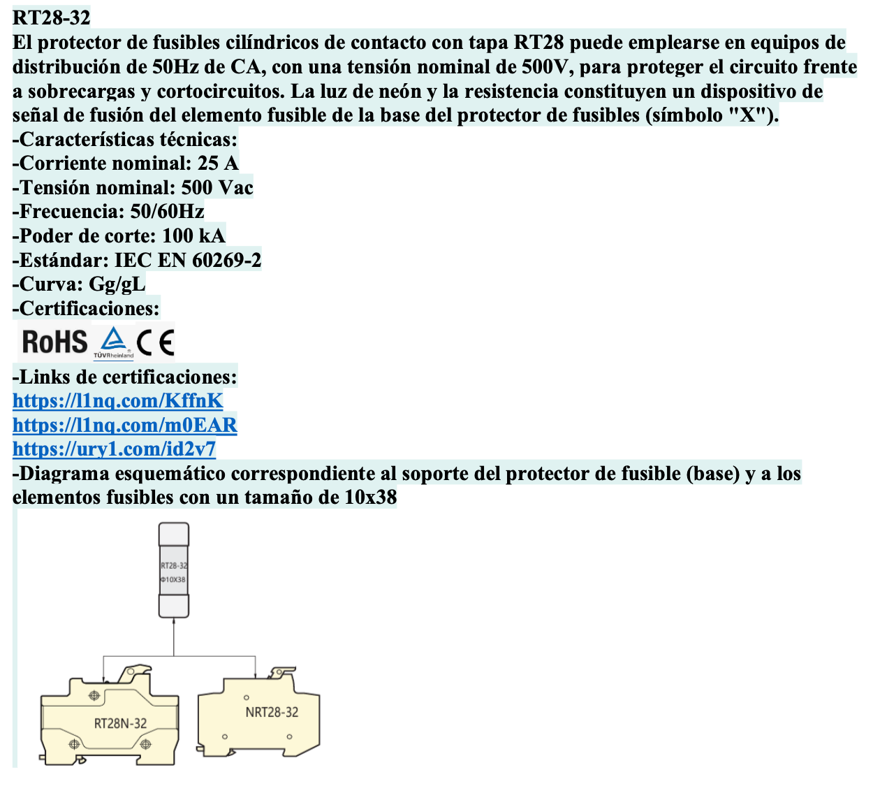 | Normativa | IEC/EN 60269 |