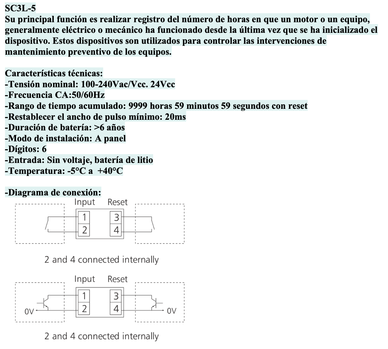 - Horómetro Digital CHINT SC3L-5 42x22.5mm 9999h59min59s – Código 271134CH
