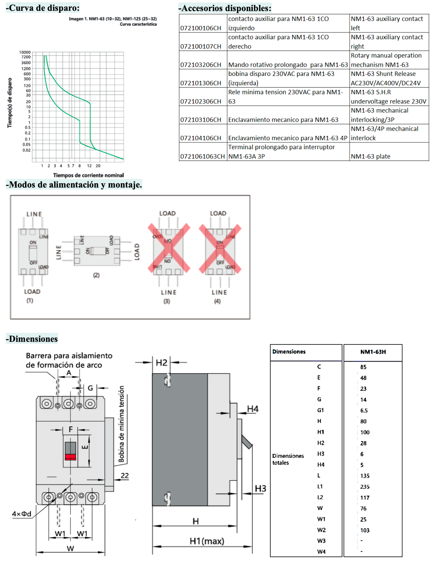 Interruptor automático CHINT NM1-63H fijo, tripolar, 16A, con capacidad de corte de 35 kA. Protege instalaciones eléctricas contra sobrecargas y cortocircuitos en entornos industriales y comerciales.
