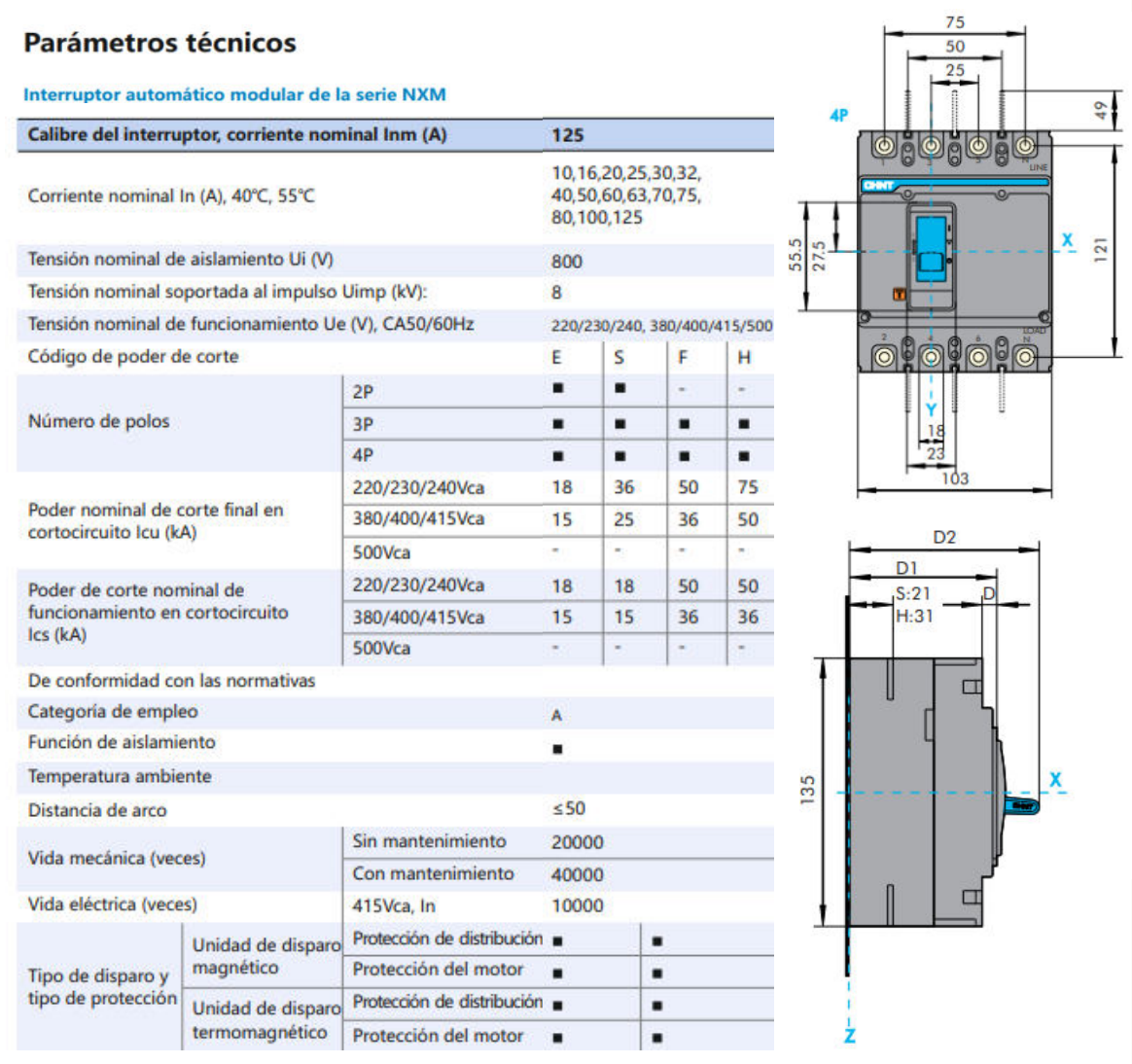 - Interruptor Automático MCCB CHINT NXM-125S 4P 125A 25kA Fijo – Código 07212420125CH