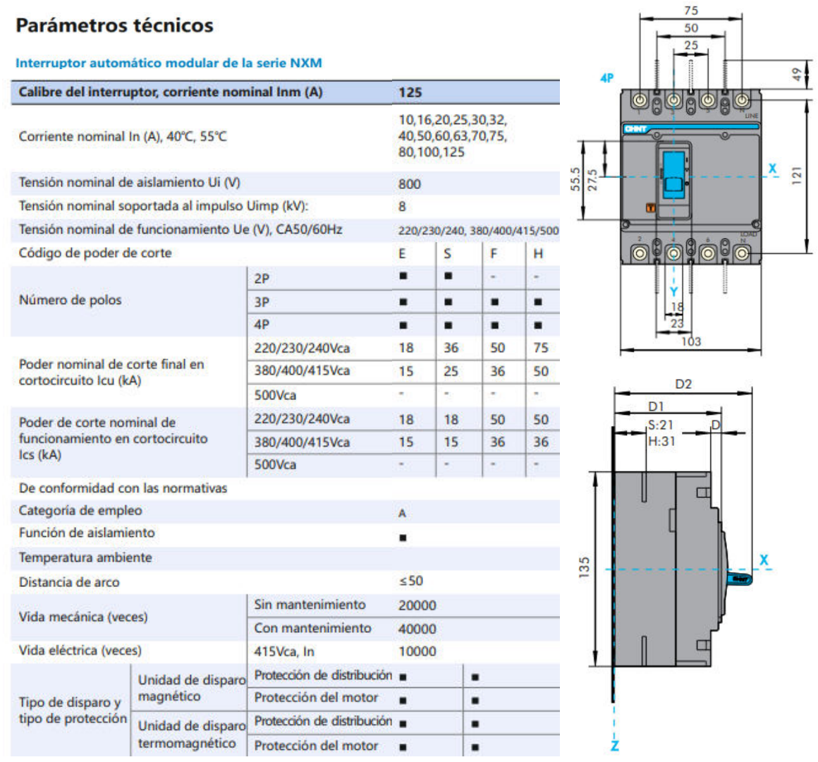 - Interruptor Automático MCCB CHINT NXM-125S 4P 80A 25kA Fijo – Código 07212420080CH
