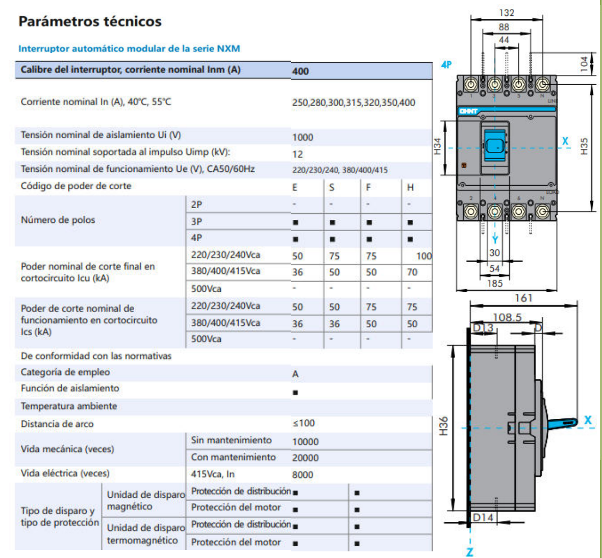 Interruptor caja moldeada CHINT NM1‑400S/4300 4P 400 A 35 kA 415 V – Código 07212430400CH