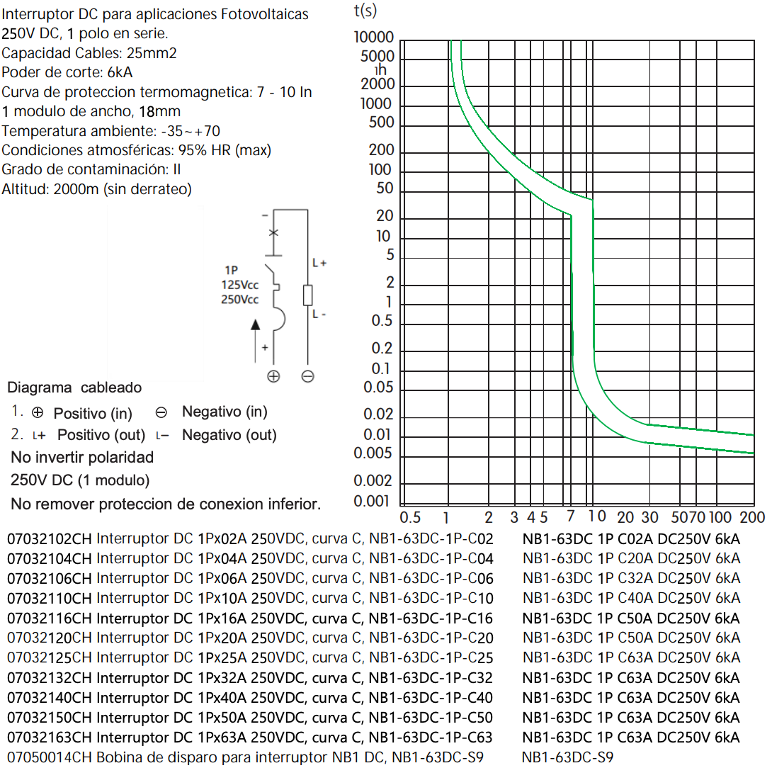 Interruptor DC CHINT NB1-63DC 1P 4A 250V Curva C – Código 07032104CH