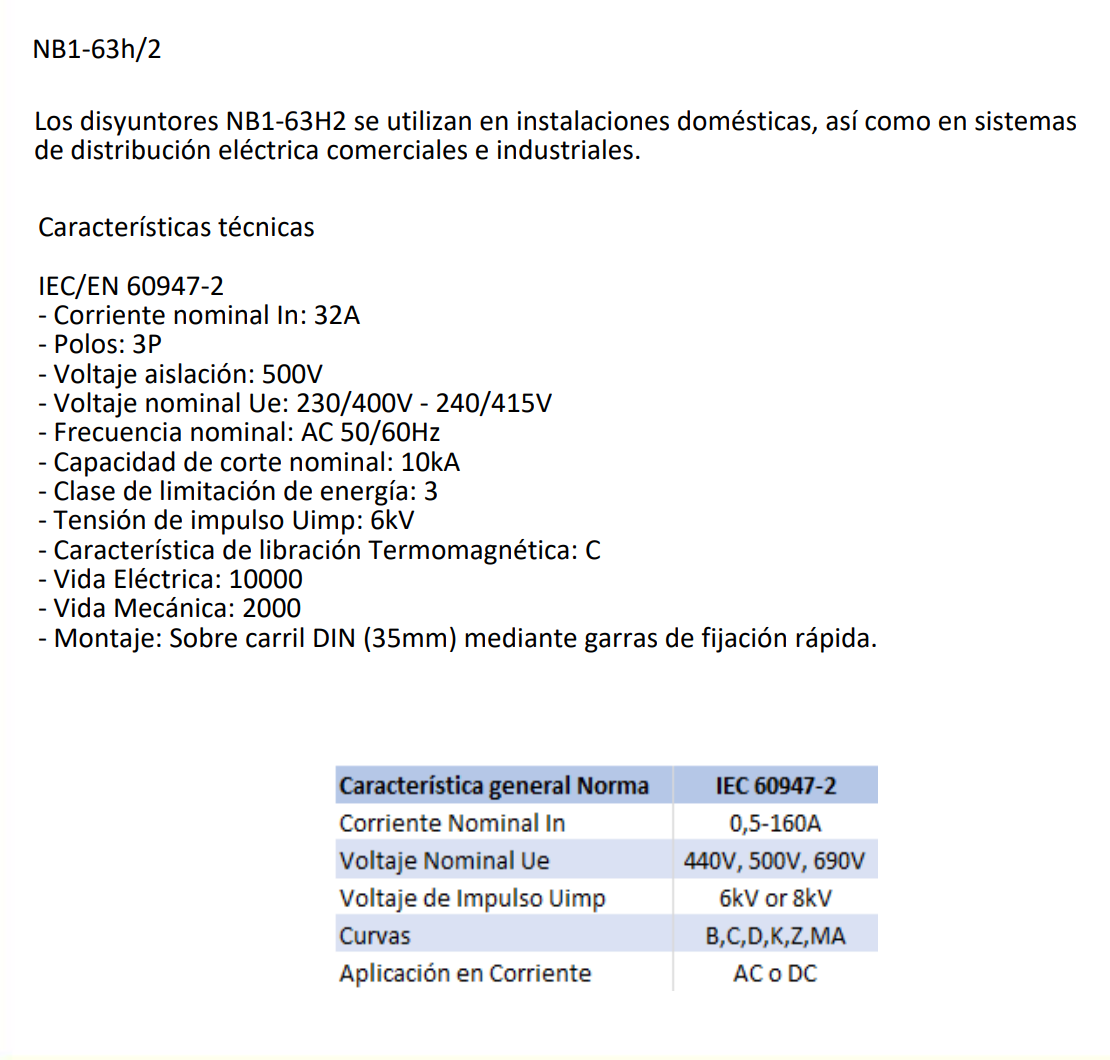 Interruptor automático termomagnético trifásico CHINT NB1-63H/2 de 32 A, curva C y capacidad de corte de 10 kA. Protege instalaciones industriales y comerciales contra sobrecargas y cortocircuitos. Cumple normativa IEC/EN 60947-2, con montaje en riel DIN y diseño robusto para tableros de distribución.