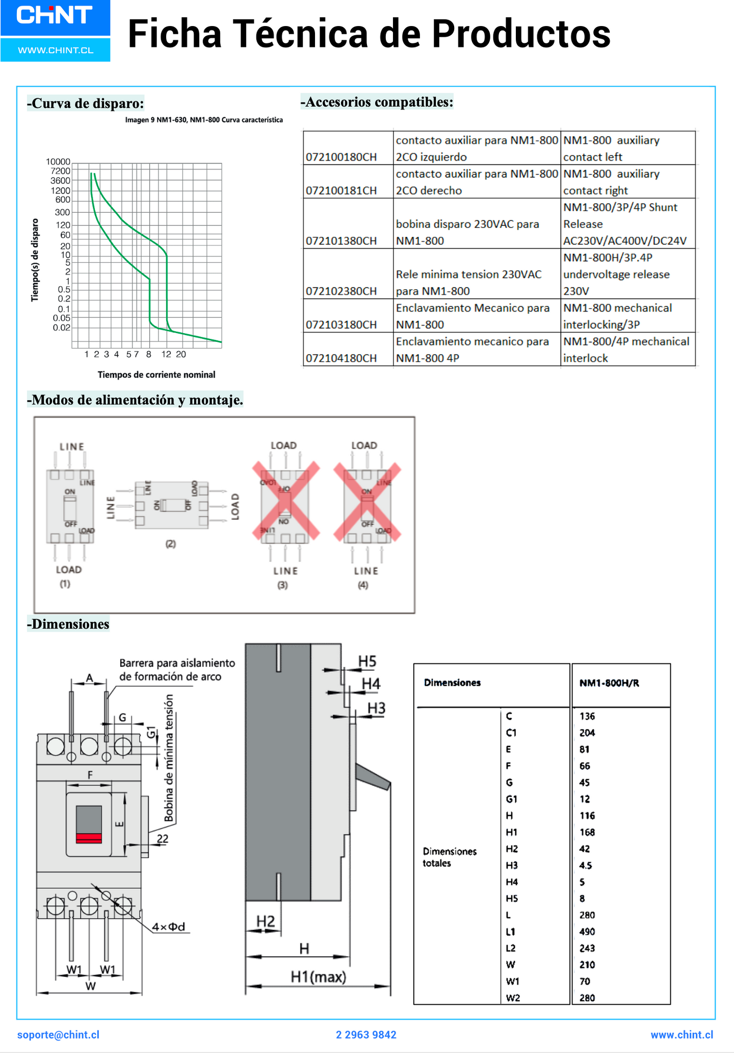 Interruptor termomagnético CHINT NM1-800H tripolar fijo de 800 A y capacidad de corte de 60 kA. Diseñado para proteger instalaciones eléctricas industriales contra sobrecargas y cortocircuitos. Cumple con normativa IEC 60947-2 y cuenta con certificaciones CE y SEC.