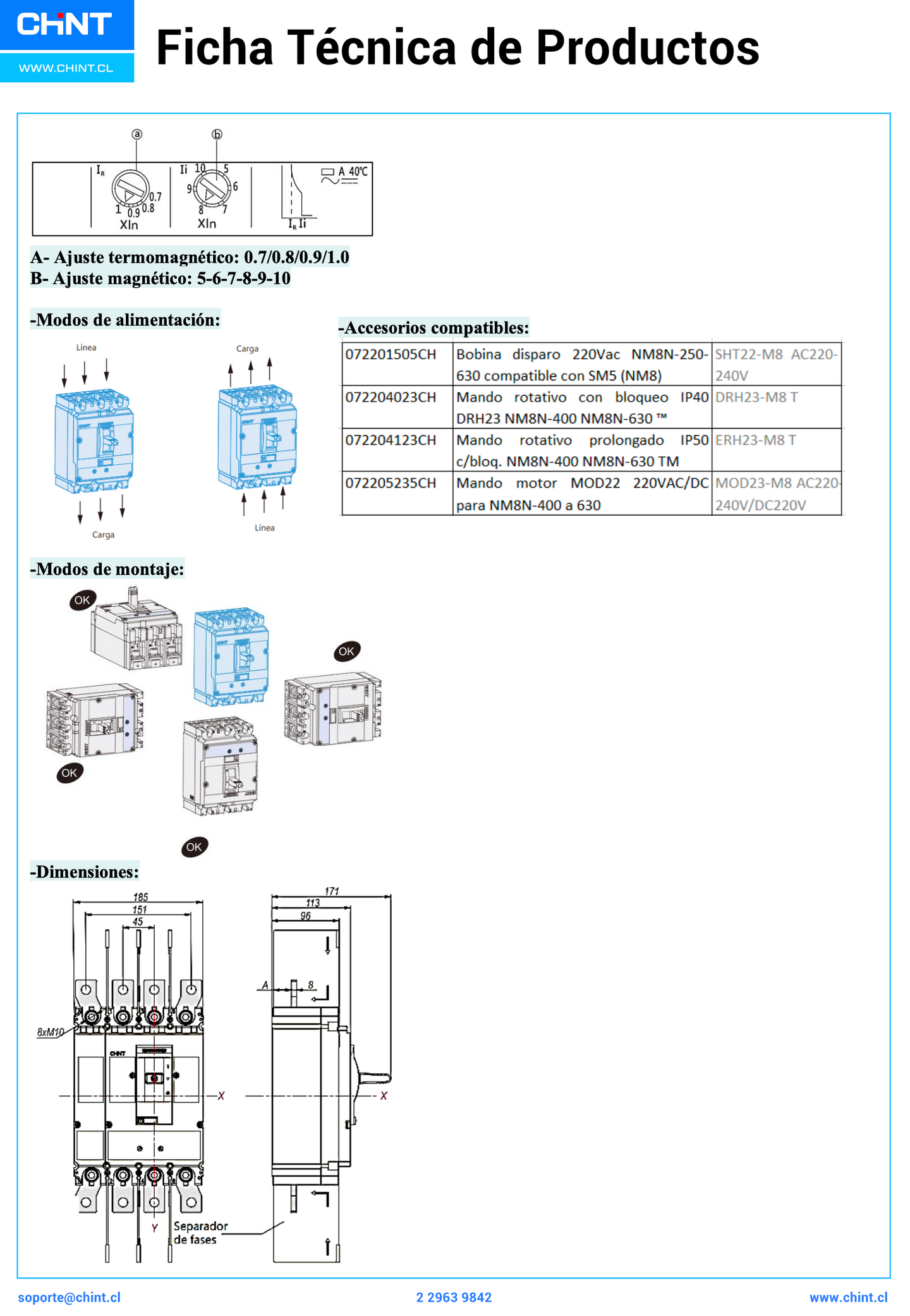 Interruptor Termomagnético CHINT NM8N-400S 4P 315A 415V 50kA 0.7–1In – Código 07024040315CH