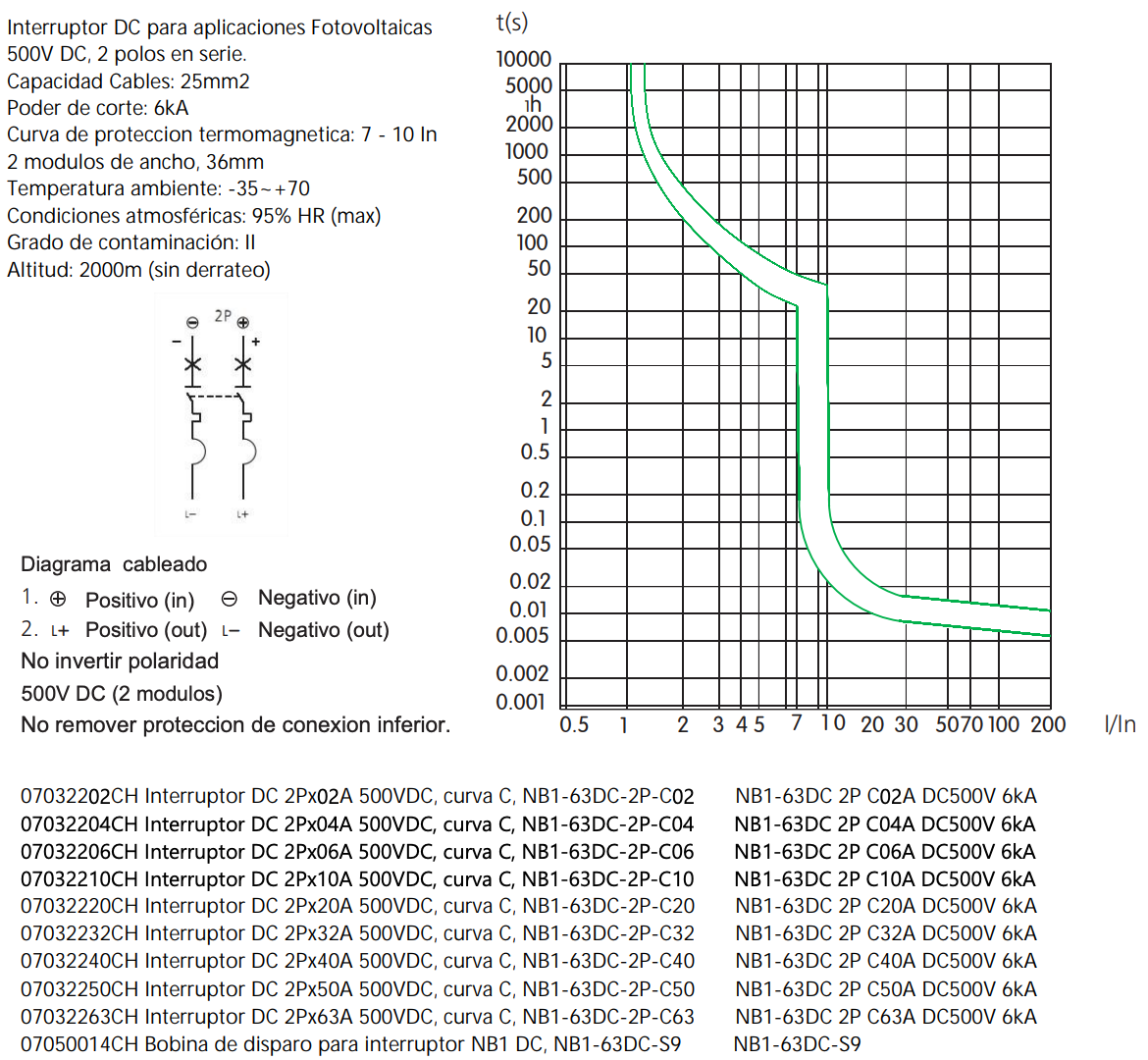 Interruptor termomagnético CHINT NB1-63DC de 4 A, bipolar, diseñado para circuitos en corriente continua (DC) hasta 500 VDC, con curva C y capacidad de corte de 6 kA. Ofrece protección contra sobrecargas y cortocircuitos en sistemas fotovoltaicos y otras aplicaciones DC. Cumple con IEC/EN 60947-2 y se instala en riel DIN estándar.