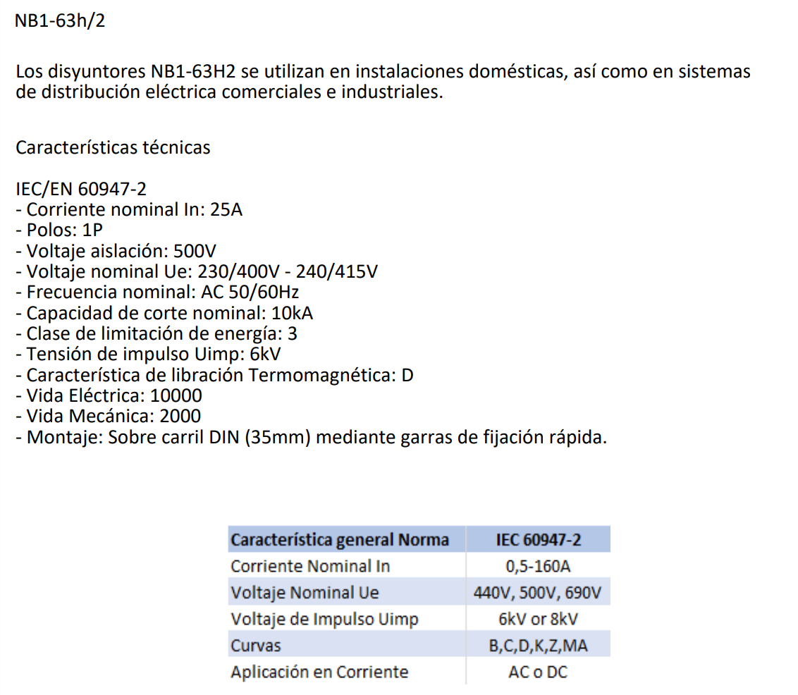 Interruptor termomagnético industrial CHINT serie NB1-63H de 1 polo, corriente nominal de 25 A y curva de disparo D. Diseñado para la protección de circuitos con cargas inductivas que presentan altas corrientes de arranque (como motores, bombas y transformadores), evitando disparos intempestivos. Posee una capacidad de ruptura de 10 kA según normativa IEC/EN 60947-2.