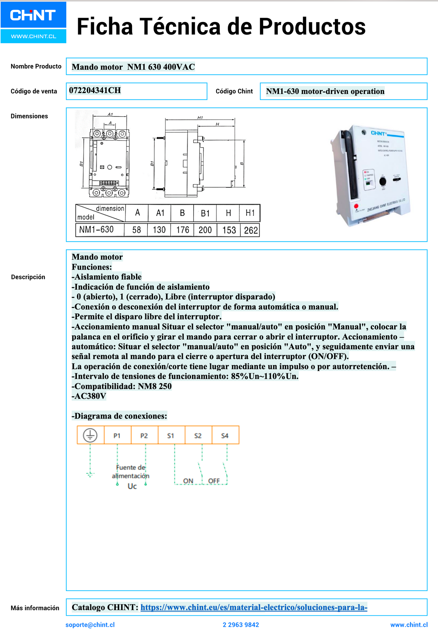 Mando Motor CHINT NM1-630 400V AC – Código 072204341CH