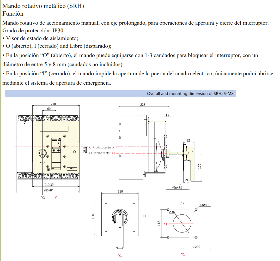 Mando rotativo prolongado CHINT NM8N-1600 con protección IP30 y mecanismo de bloqueo. Diseñado para operar interruptores termomagnéticos de forma segura, permitiendo control manual de apertura y cierre del circuito.