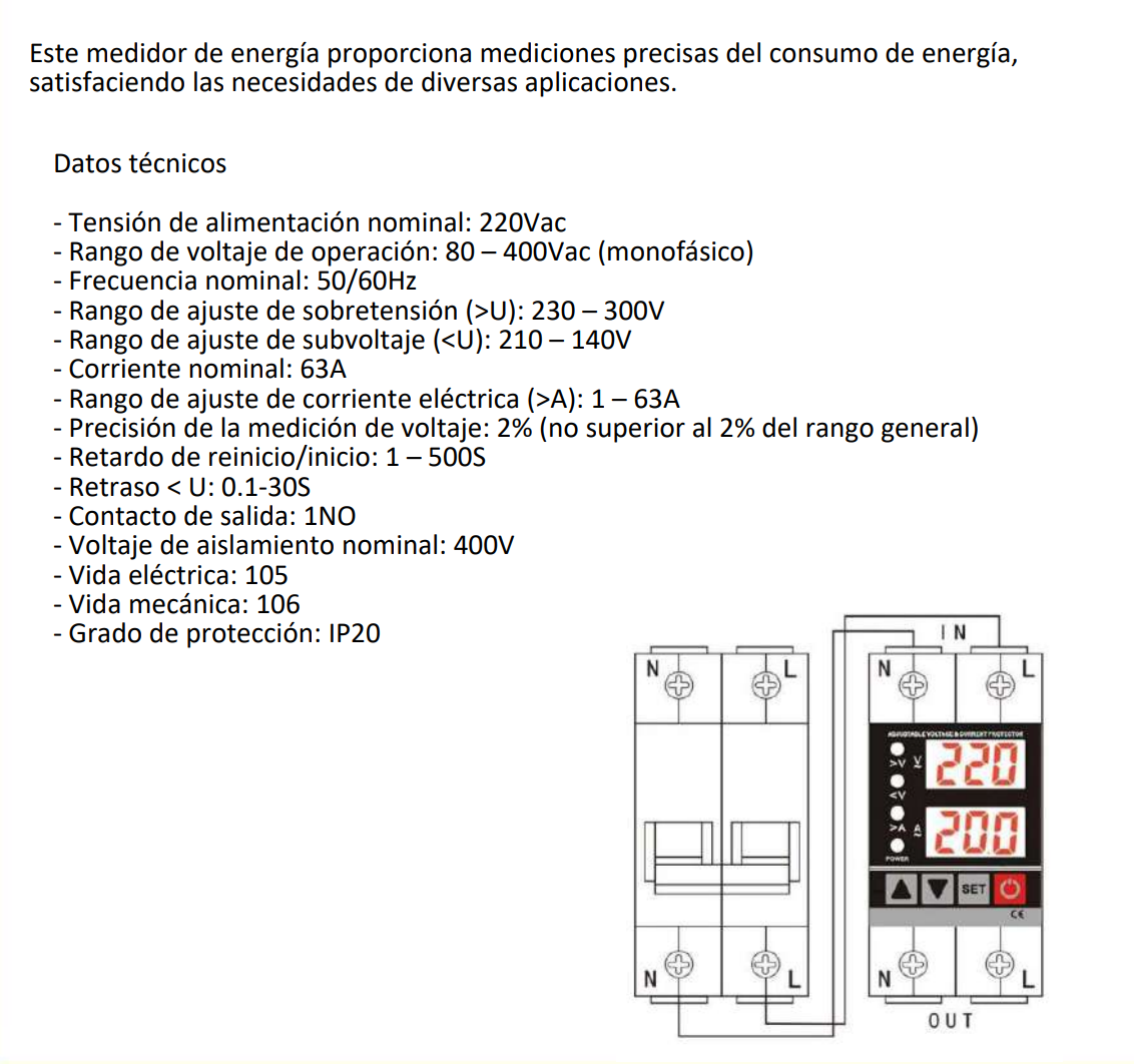 - Protector Monofásico Fastelec 63A con Display V/A – Sobre/Bajo Voltaje – Código 050601263FHE