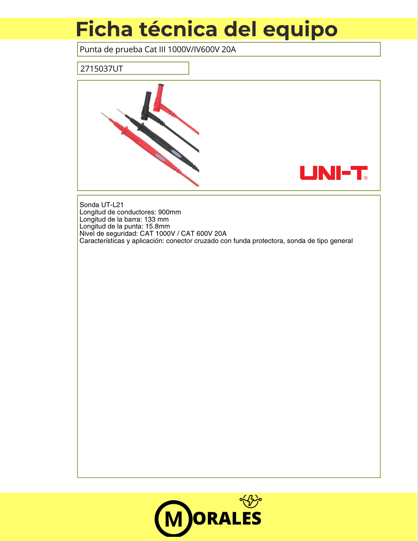- Puntas de prueba CAT III 1000V / CAT IV 600V – UT-L21 - 2715037UT