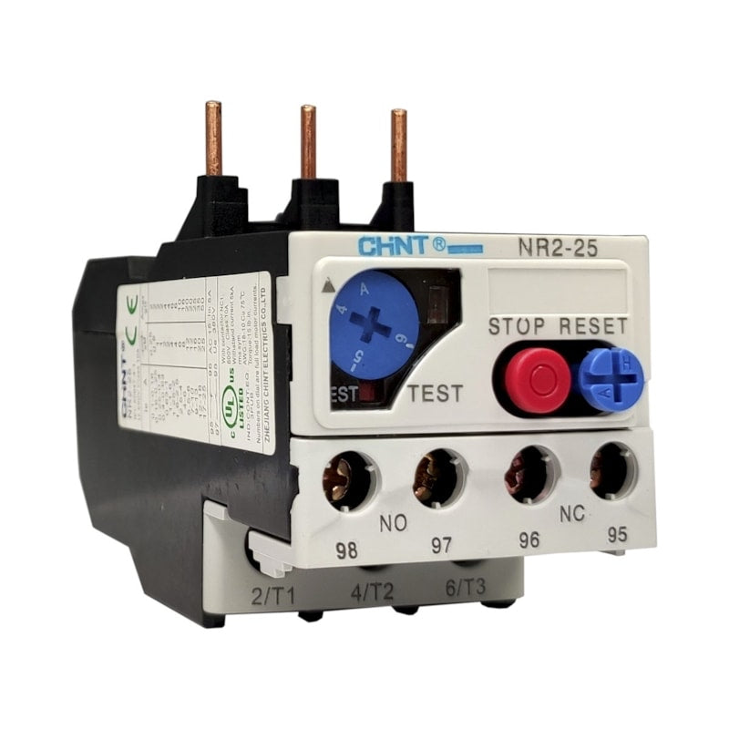 El Relé Térmico CHINT NR2-25 con rango ajustable de 4,0 a 6,0 A está diseñado para proteger motores eléctricos contra sobrecargas y fallos de fase. Compatible con contactores NC1-9A, este relé ofrece una solución confiable para aplicaciones industriales que requieren protección térmica precisa.