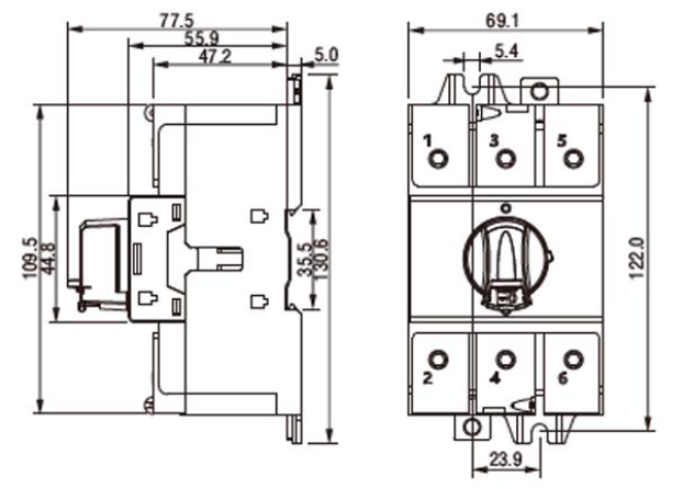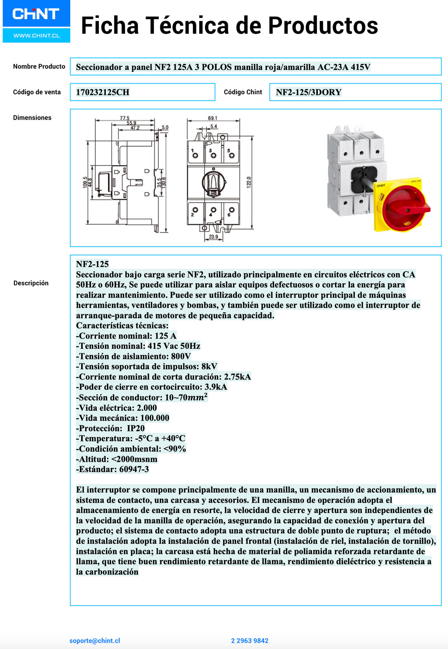 Seccionador a Panel CHINT NF2-125/3DORY 125A 3 Polos Manilla Roja/Amarilla AC-23A 415V – Código 170232125CH