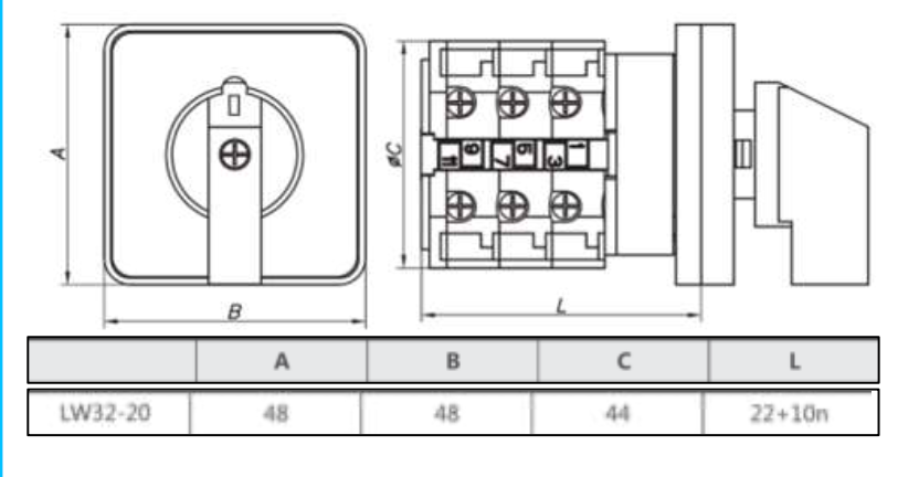 Seccionador Rotativo CHINT LW32-20/C08/4 4P 20A AC1 2 Posiciones (0-1) – Código 170242204CH