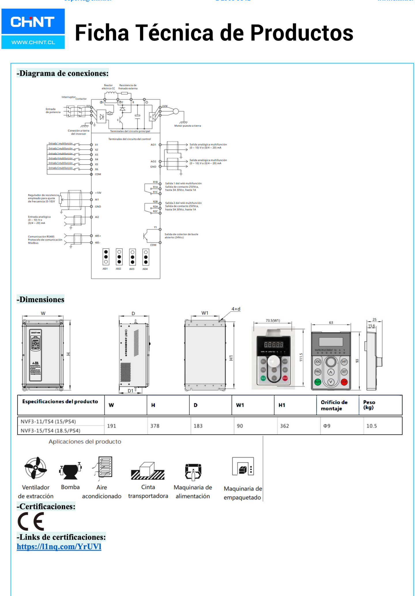 - Variador de Frecuencia CHINT NVF2G-11/TS4 3F 11 kW 25 A 380 V PID Vectorial Par Constante – Código 131015038CH